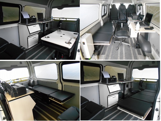 | 乗降用ステップはスライドドア連動の機械式のため(電動式ではありません)電装系のトラブルがありません。 後部座席は3点式シートベルトが内蔵されています。 注意)ご紹介画像の室内レイアウト変更風景画像の事務室設備、車中泊装備、レジャーアイテム用品等は車両に含まれておりません。また床面色、座席形状は旧モデルを表示しております。 |
